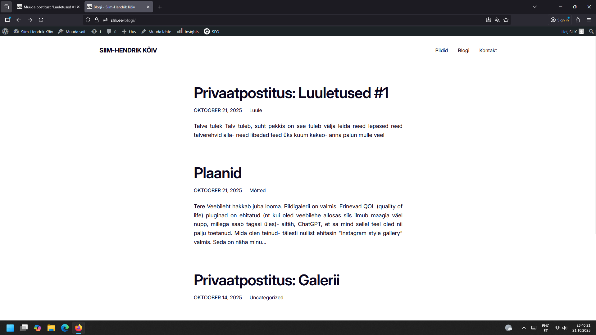 Siis kirjutasin paar luuletust ümber. Harjutasin trükkimist. Sain veebilehele sisu juurde- kui väga lakooniliselt läheneda. Enda arust päris ägedad luuletused (muidugi…)